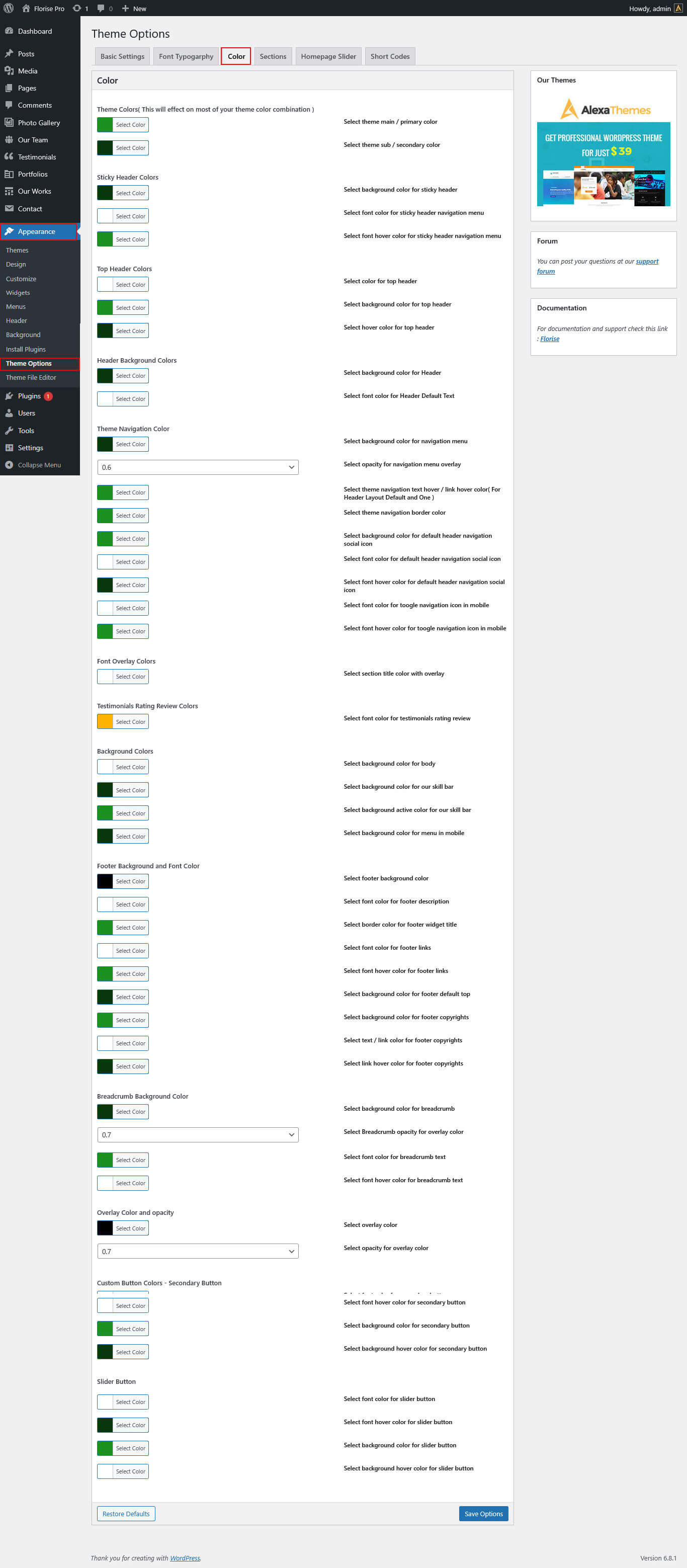 The following theme contains the Settings option. These settings allow you to change the theme’s color palette, order of items, turn items on/off and do lots of other things. In order to use these settings, please go to Appearance → Theme Options.