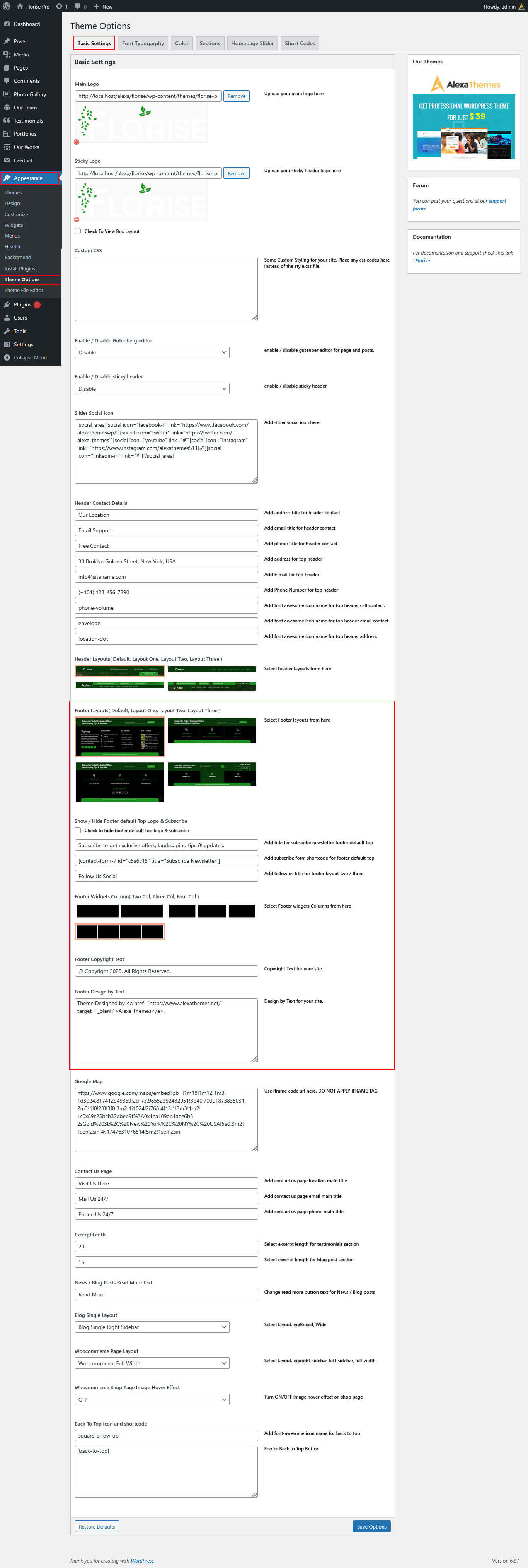 - For Top Header Contact Info: go to Appearance >> Theme Options >> Basic settings >> Contact info details And Social Icons.