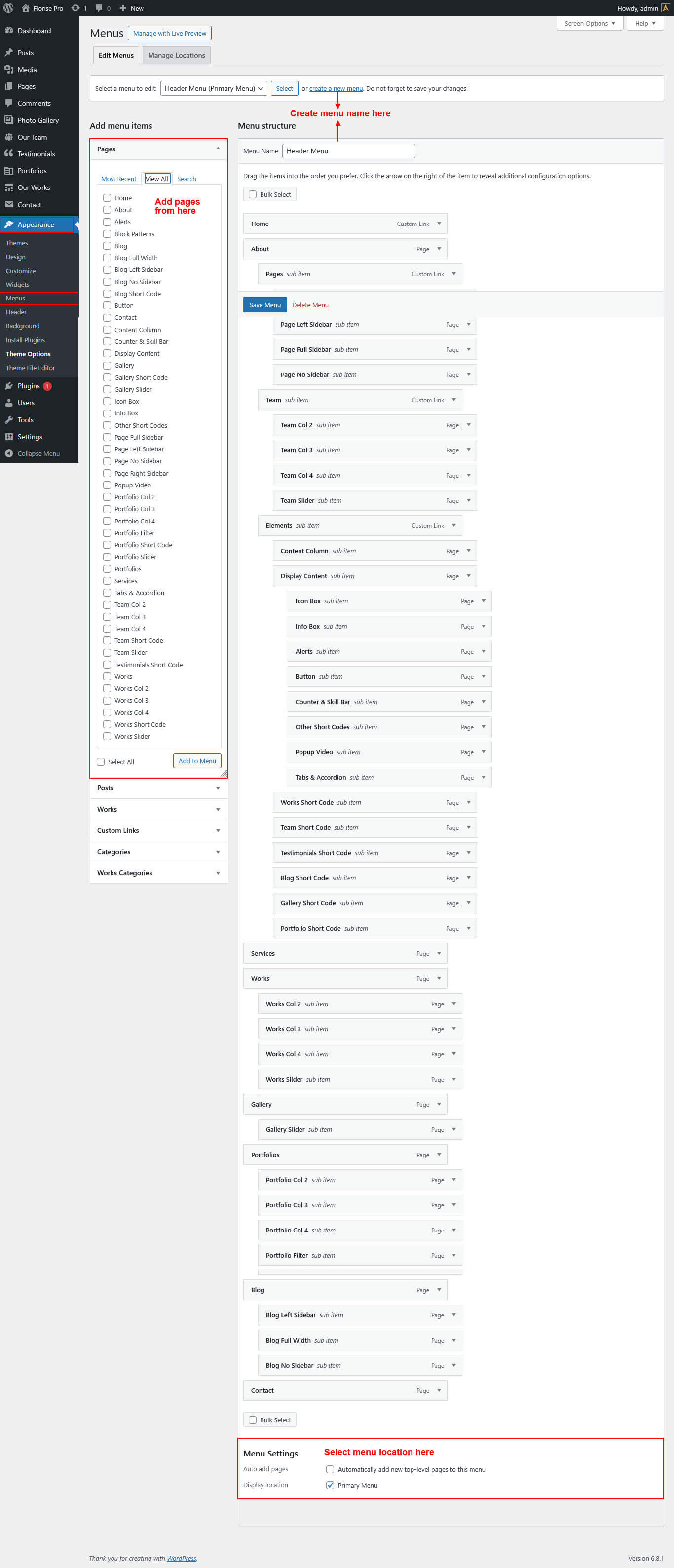 - For footer Menu: Go to Appearance >> Menu >> Select Menu Location