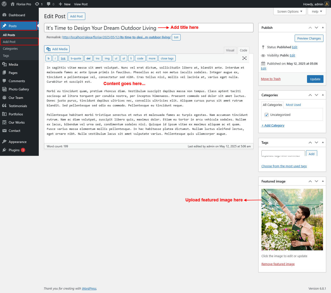 For setting up Blog & Stories section first of all you need to add some posts by using Posts. Follow below instruction to add posts.