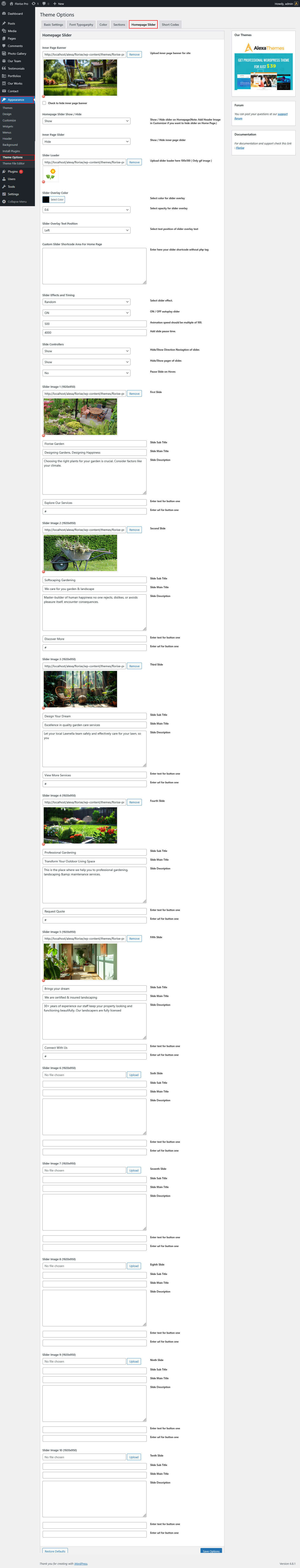 - For Slider: Go to Appearance >> Theme Options >> Homepage Slider >> Upload image, Add Title/Sub Title/ Slider Button Text & Link