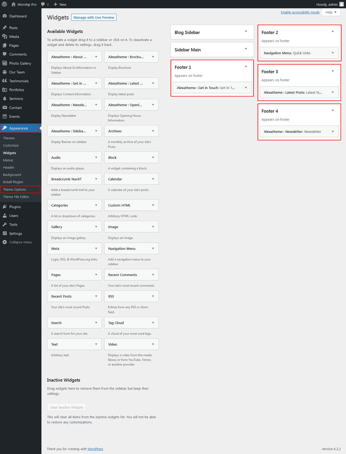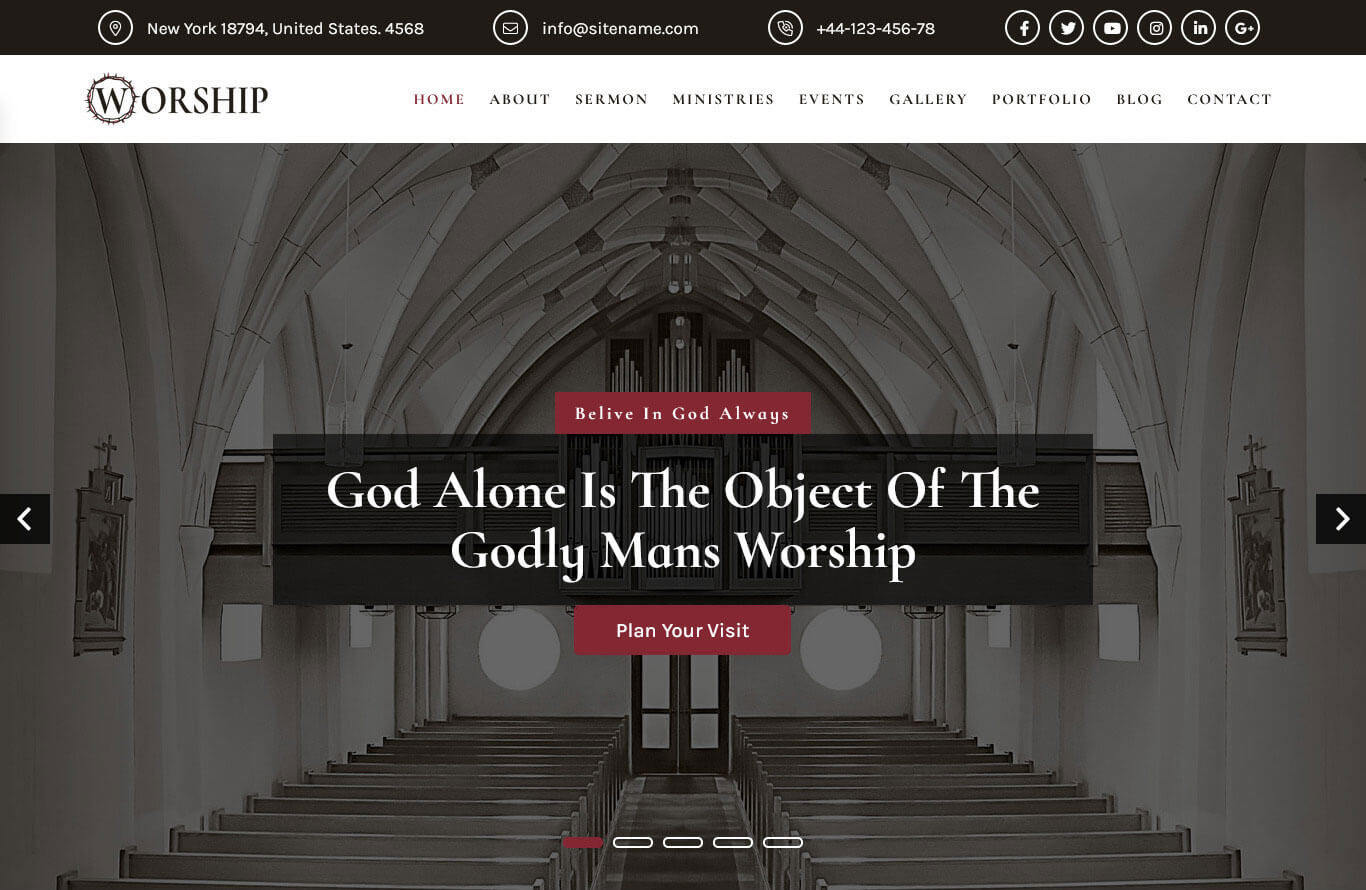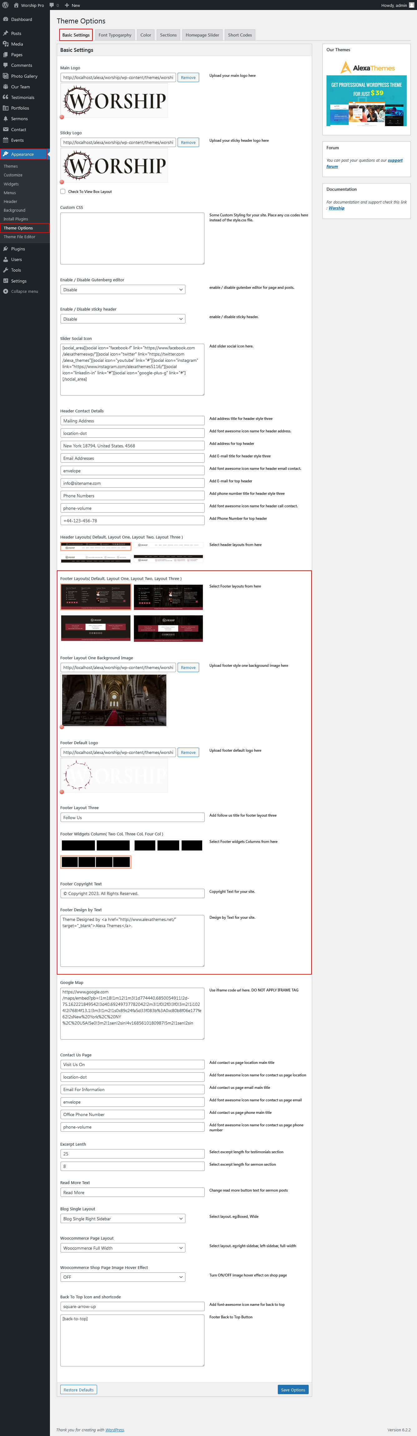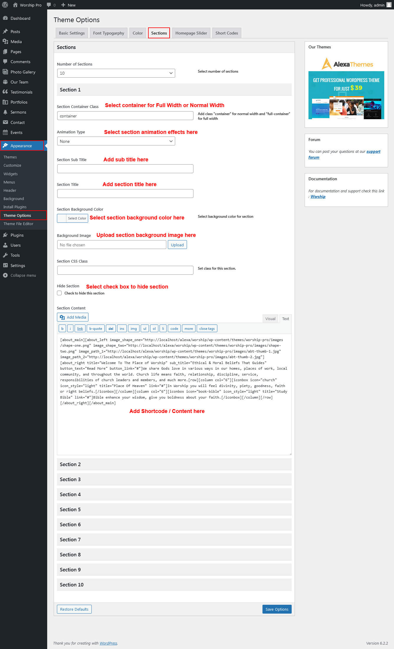 For setting up Welcome To The Worship section Go to >> Appearance >> Theme Options >> Sections >> Select Section 1.