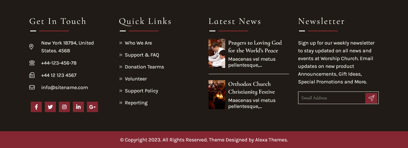 [social_area][social icon="facebook-f" link="https://www.facebook.com/alexathemeswp/"][social icon="twitter" link="https://twitter.com/alexa_themes"][social icon="youtube" link="#"][social icon="instagram" link="https://www.instagram.com/alexathemes5116/"][social icon="linkedin-in" link="#"][social icon="google-plus-g" link="#"][/social_area]