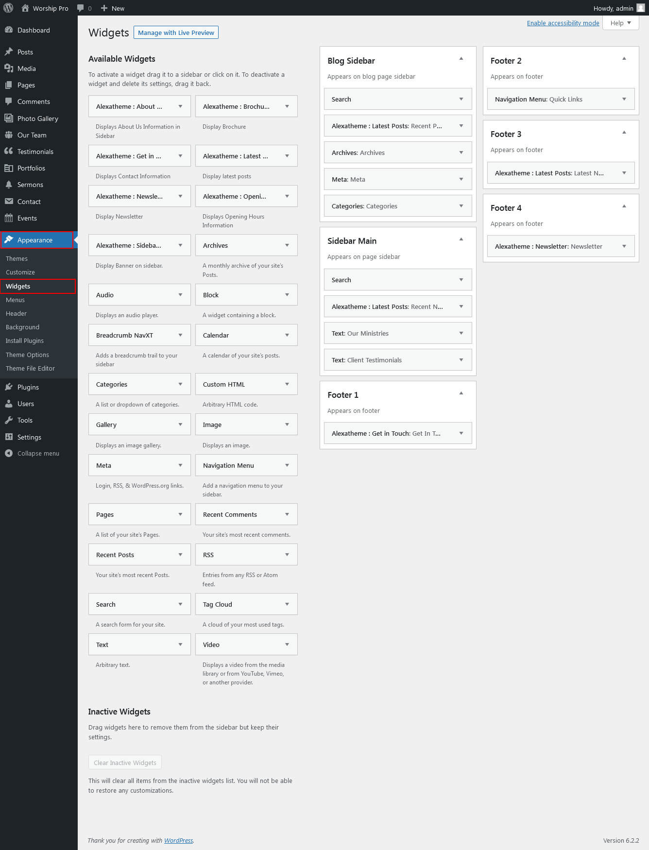 For setting up Our Pastors section Go to >> Appearance >> Theme Options >> Sections >> Select Section 8.